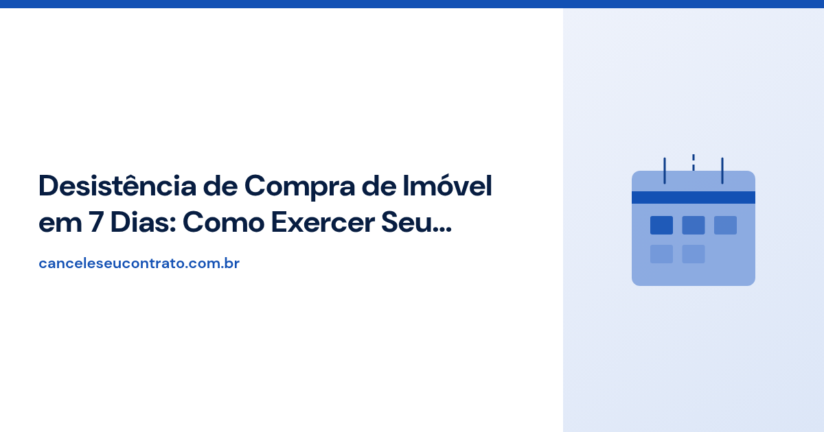 A desistência de compra de imóvel em 7 dias é garantida pelo artigo 49 do Código de Defesa do Consumidor quando a compra é realizada fora do estabelecimento comercial.